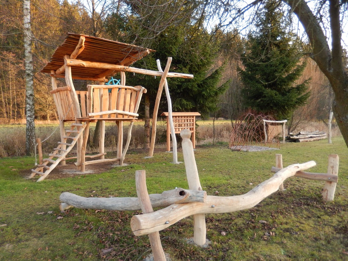 Na našem přírodním hřišti se můžete seznámit s celou řadou stromů, keřů, brouků a dalšími stálými obyvateli naší zahrady, kteří zde žili vždy. Jen jsme se v rámci projektu rozhodli, že Vám je hravou formou představíme. Čekají na Vás vodní hrátky, info panely, altán se zelenou střechou, kluzný kámen, trampolína, brouci, indiánské teepee a mnoho dalšího.